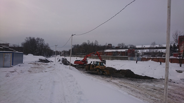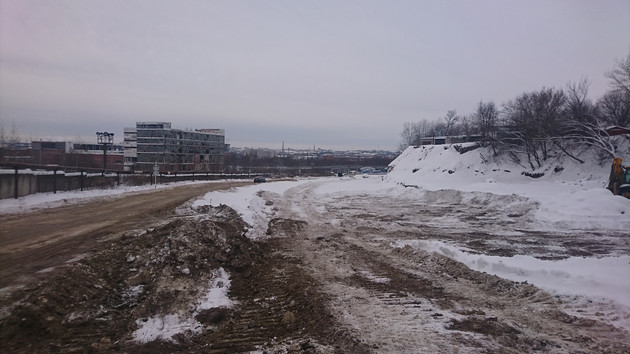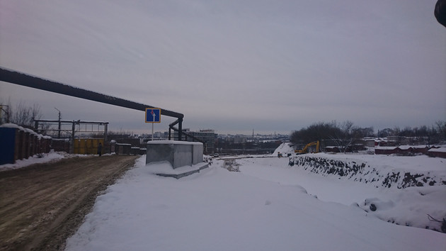 Слева – бетонный забор предприятия, справа – котлован под будущий Рпенский проезд. А ведь буквально год назад тут еще стояли отдельные гаражи.