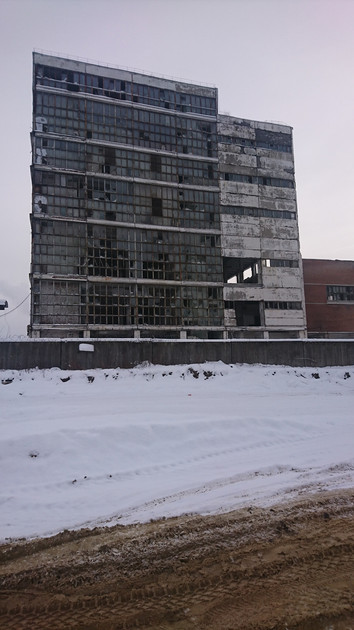 Спускаюсь к одной из самых легендарных «заброшек» города – корпусу химического завода, где практически нет целых окон.