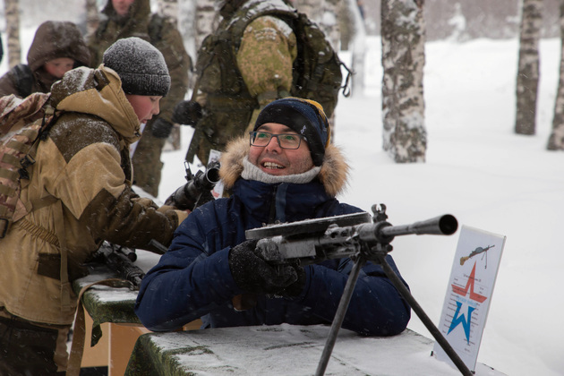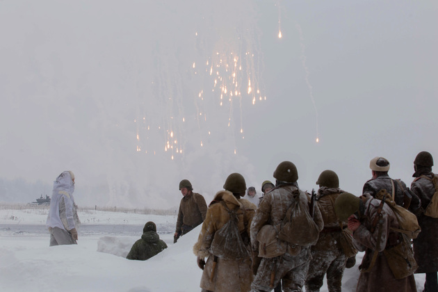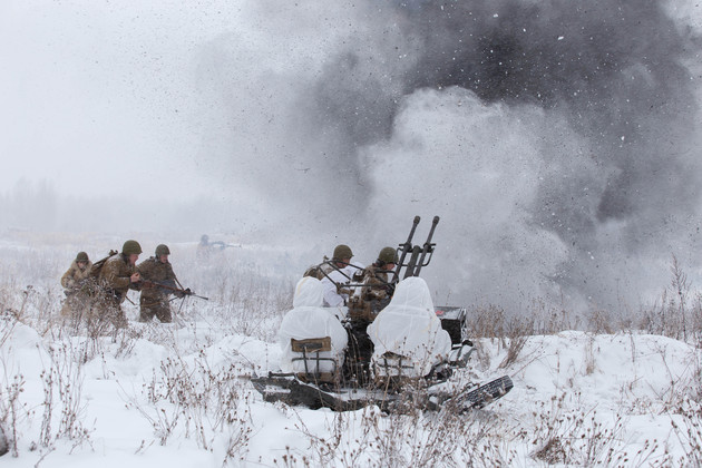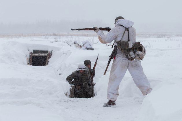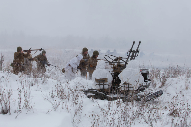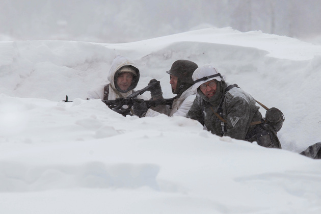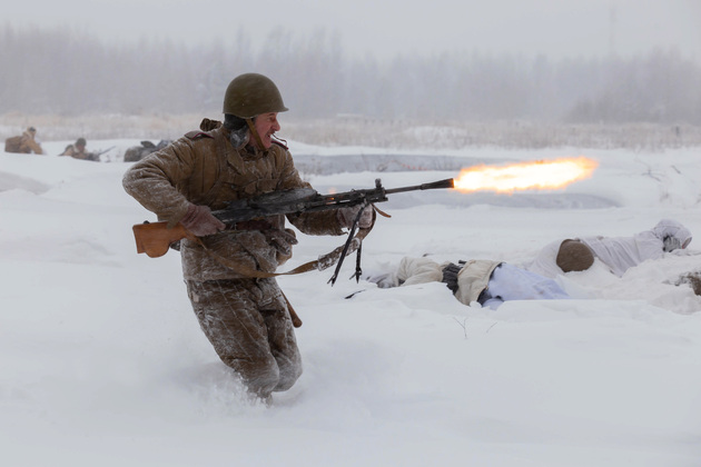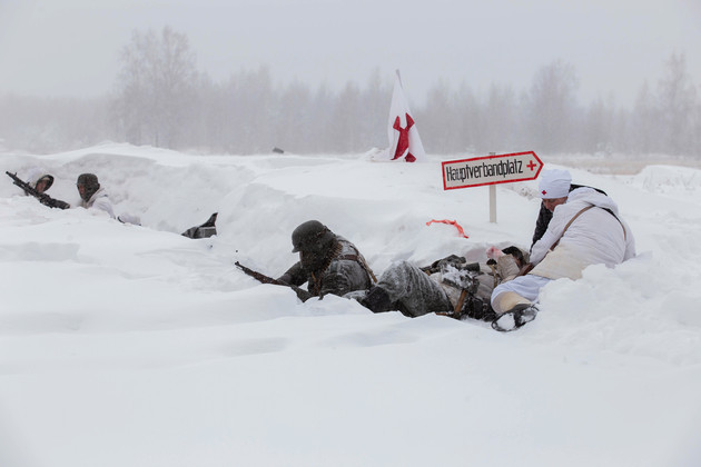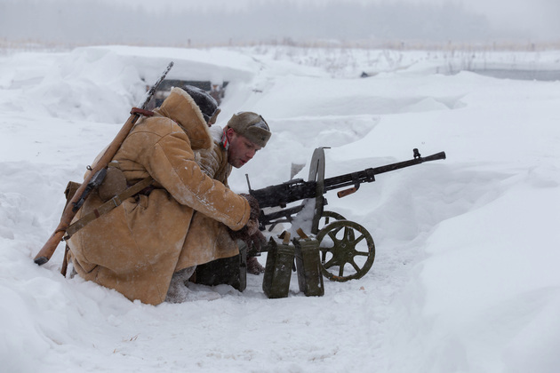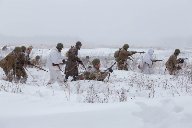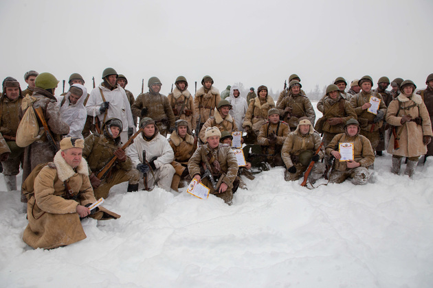Но вообще тяжело было всем. Представляете, каково это — на пятнадцатиградусном морозе, по пояс в снегу бежать вперед и перезаряжать оружие? В рукавицах этого не сделать, так что наши реконструкторы мчались в нападение с голыми замерзшими до лилово-красного состояния руками. Но справлялись! И вы бы видели их лица в процессе! Разумеется, в итоге наши победили, взяв в плен уцелевших фашистов.