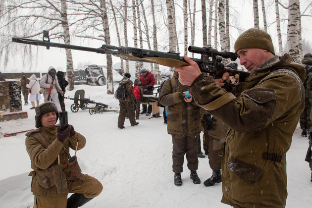 Максим, один из активистов владимирского военно-исторического клуба «222-й стрелковый полк», в движении реконструкторов около семи лет, но уже приобщил к военной истории сына-подростка. Название своего клуба объясняет так: 222-й полк был сформирован в 1941 году во Владимире, а в 1943-м почти две трети наших земляков из него полегли в боях под Сталинградом. «В городе сейчас мало кто знает об этом, так что мы решили, что назвать в честь этих героев наш клуб — это неплохая дань их памяти», - говорит Максим.