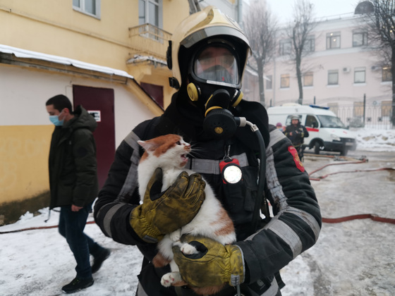 В ходе эвакуации из жилого дома было выведено 16 человек, в том числе 4 ребенка. Кроме того, спасатели вынесли на улицу несколько котов.