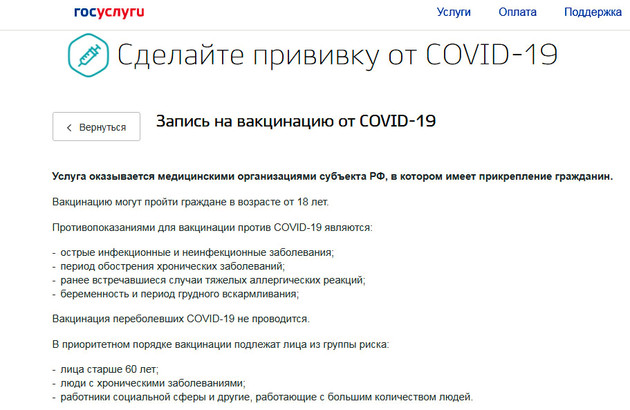 31 января на портале Госуслуги была размещена форма записи на вакцинацию.