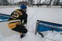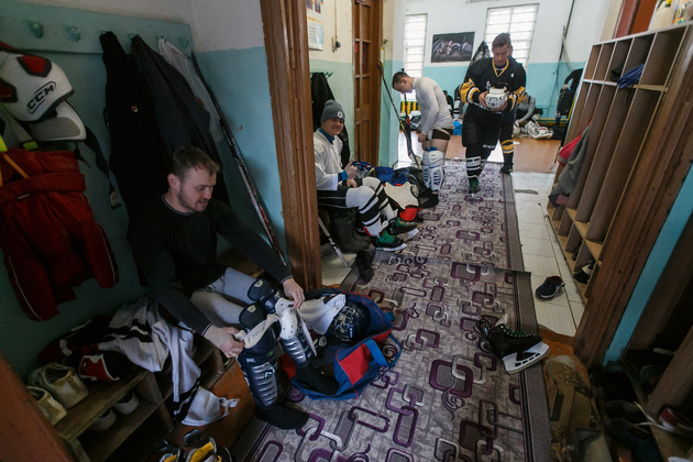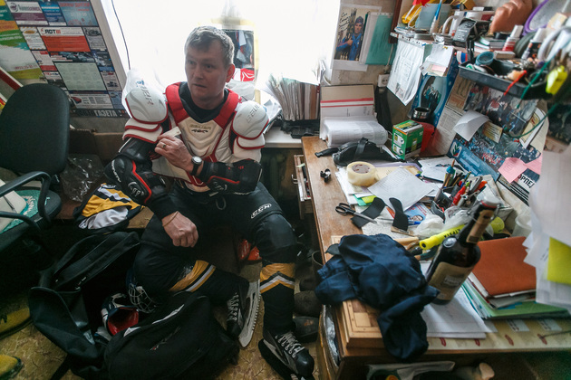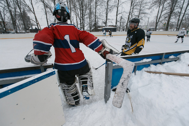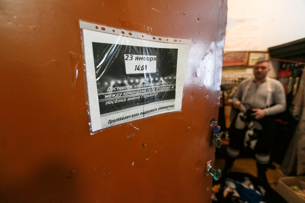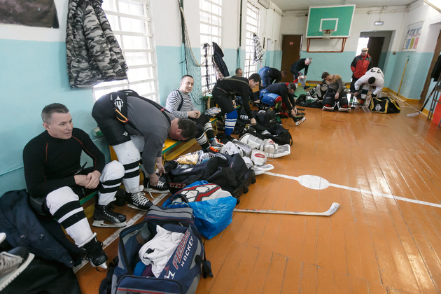 Хоккейная коробка стоит на территории Второвской школы. Тут же устроили и импровизированную раздевалку для команд. Один из активистов - и по совместительству учитель физкультуры в этой же самой школе - Александр Гаранькин проводит нас в это хоккейное «закулисье». Пока он одевает на себя хоккейное обмундирование, словно рыцарь – доспехи, мы успеваем расспросить его про идею строительства площадки: