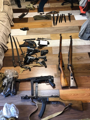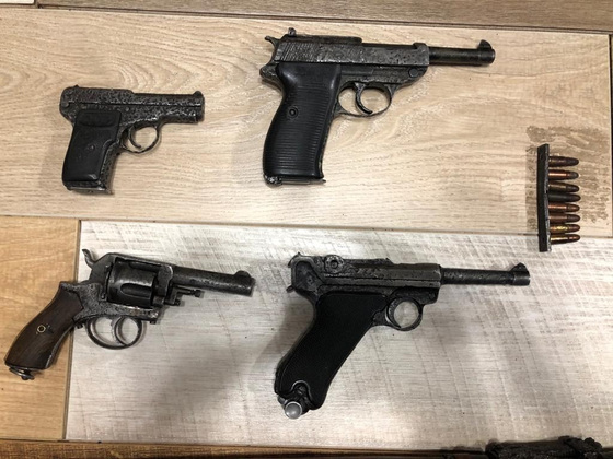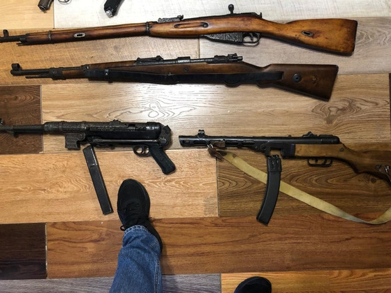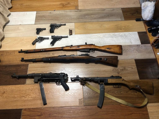 Правоохранители нашли у него несколько винтовок - Мосина иМаузер К98, пистолет-пулемет ППШ, а также пистолет-пулемет MP-40, пистолет Тульский Коровина, пистолет Вальтер P38, пистолет Люгера, револьвер Webly&Scott, а также 7 патронов калибра 7,62х25 мм.