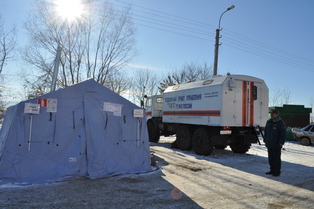 В составе мобильного пункта МЧС России – обогреваемая палатка, где можно отдохнуть, согреться, выпить горячий чай и зарядить мобильный телефон. Пункт обогрева также оборудован микроволновой печью, ноутбуком, создан запас продуктов питания.