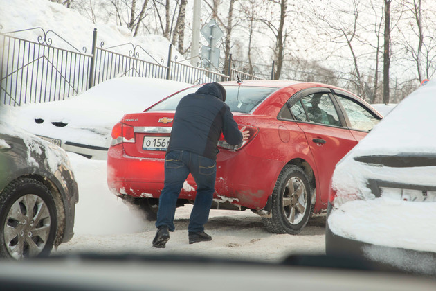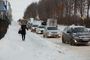 Выезд из Веризино – в горку. Машины буксуют. Вот забуксовала красная легковушка. Потом фургон с молочкой. Периодически очередь сдает назад, чтобы застрявший автомобиль мог взять «разбег». Иногда приходится толкать машину. Если кто-то не выберется, то запрет всех остальных.