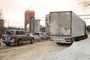 Едем смотреть, что творится в Веризино и на перекрестке М7 с улицей Горького рано утром, когда люди выезжают на работу. Проезжая мимо поворота на Юрьев-Польский, видим буксующую синюю фуру.