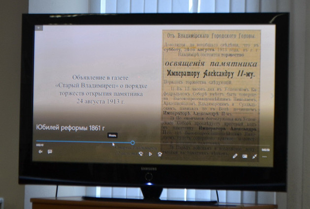 В год 160-летия освобождения крестьян сотрудники Госархива Владимирской области презентовали мультимедийный проект под названием «Юбилейные торжества в честь 50-летия отмены крепостного права во Владимирской губернии 1911–1913 гг.». По факту это пятиминутный видеоролик-презентация, размещенный на сайте Госархива ( http://vlarhiv.ru/ ). Тот же материал можно скачать в формате электронной книги.