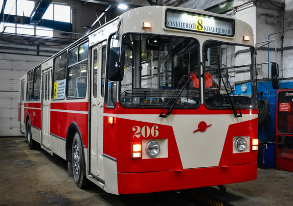 В “строй” возвращен ретро-троллейбус № 206 1992 года выпуска. Внешний вид машины, ее ходовая часть, электроустановка, внутреннее оборудование кабины водителя, - все приведено в аутентичный вид. При реставрации использовались только оригинальные запасные части и детали. Сиденья поставили современные, антивандальные.