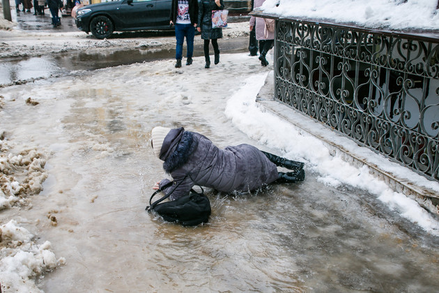Конечно, погода виновата. Резкий перепад температур, дождь и оттепель после снегопадов и морозов — беда для коммунальных служб в любом городе мира. Но! И через сутки после дождя - в субботу — никто во Владимире не удосужился даже посыпать тротуары песком. Владимирцы снова рисковали своим здоровьем, выходя на улицу! А, напомним, за две недели до этого город просто погряз в сугробах, несмотря на ежедневный нон-стоп релизов администрации города Владимира о колоссальных усилиях по очистке улиц от навалившего снега армией из 700 дворников и десятков единиц техники.