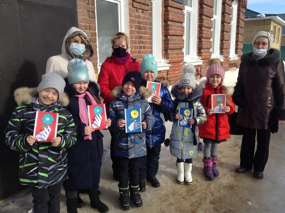 Многие жительницы Гороховца услышали теплые поздравления и получили из рук детей открытки с 8 Марта.