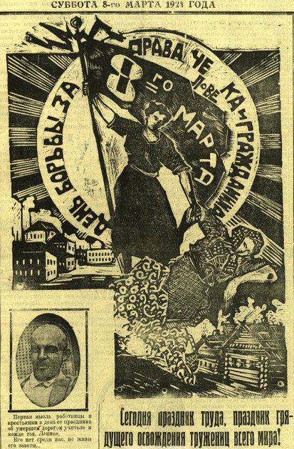 Обычно восьмимартовские подборки газетных статей в те годы сопровождал портрет ветерана социал-демократии и компартии Германии Клары Цеткин и рассказы об истории праздника. Газеты напоминали, что именно Цеткин в 1910 году на конференции социалисток в Копенгагене предложила учредить международный день борьбы за права женщин. Очень понравилось советским идеологам, что в 1917 году 23 февраля по старому стилю (то есть 8 марта по новому) в Петрограде состоялся протестный марш женщин. А после революции западный женский праздник на российской почве набрал максимальные обороты.