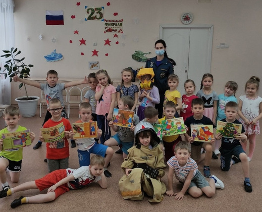 Инспектор Юлия Авдеева разобрала с детьми понятие пожара, причины его возникновения, напомнила телефон пожарной охраны, а также рассмотрела ситуацию, если возгорание произошло в детском саду и в квартире. Малыши с большим интересом рассматривали и даже примеряли костюм пожарного и устройство «Самоспасатель». Оказывается, в таком жёлтом капюшоне можно дышать в задымлённом помещении 20-30 минут. Этого хватит, чтобы спуститься по лестнице, ведь пользоваться лифтом при пожаре нельзя!