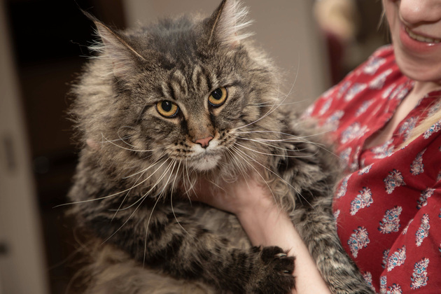 Кстати, Элис еще будет расти: полный потенциальный размер мэйн-куна достигается в возрасте от 3 до 5 лет, в отличие от «обычных» кошек, растущих до года. Оксана говорит, что в содержании эти гиганты — обычные кошки, которые «просто размером больше» и «больше кушают». Ну, и еще они все - создания повышенной пушистости, поэтому частое вычесывание шерсти — обязательный ежедневный ритуал. Иначе колтуны неизбежны.