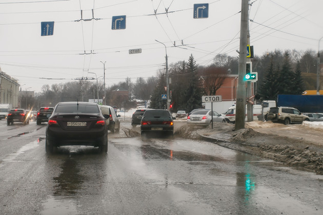 Автолюбители со стажем знают: при выезде на Добросельскую со стороны улицы Воронина их в это время года ждет большая лужа. Ожидания не обманули и сегодня. Безобразно почищенная Воронина, где с огромным трудом разъезжаются легковушки с автобусами, теперь еще и поплыла. Жители частных домов охотно подваливают на проезжую часть новые порции снежной каши со своих дворов.