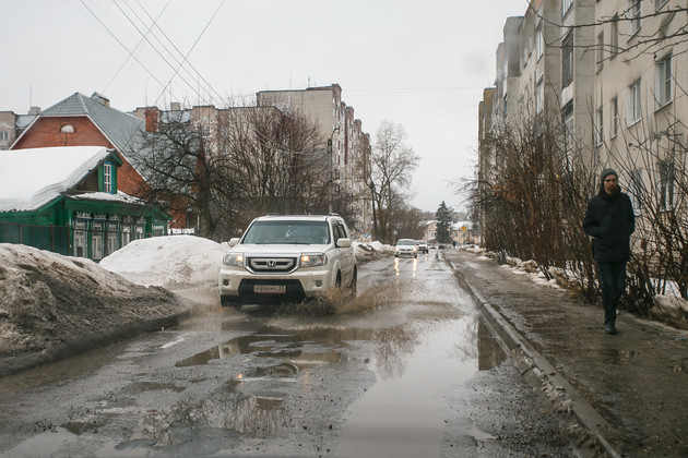 И даже там, где есть ливневая канализация, потопов, видимо, не избежать. Зимой на владимирские дороги еще и высыпали тонны песко-соляной смеси. Песок забивает «ливневки», толстым слоем оседает на дорогах.
