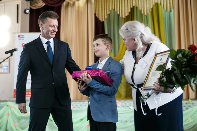Именинник Сергей Бубнов - ему исполнилось 12 лет - получил и подарок от губернатора.