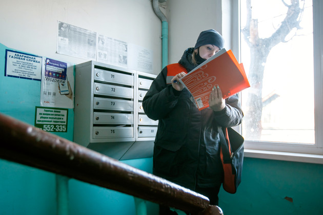 Следующий адрес. Сначала тоже тишина за дверью. А потом детский голос сообщает, что бабушки и дедушки нет дома. Сотрудница МЧС тут же говорит девочке, чтобы незнакомым дверь не открывала.