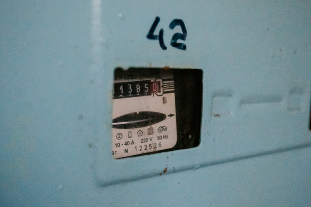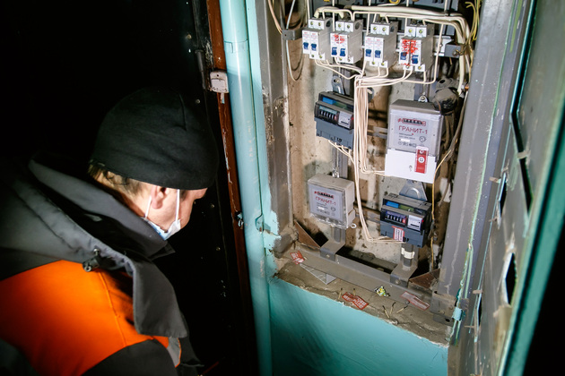 Едем с комиссией на проспект Строителей. Неплательщиков там уже отключили. Это не стимулировало их погасить долги, но жить «без света» они не хотят, поэтому подключаются к сетям самопальным образом. В одном подъезде сразу две квартиры должников. На одной долг в 35 тысяч, на второй — 103 тысячи рублей.