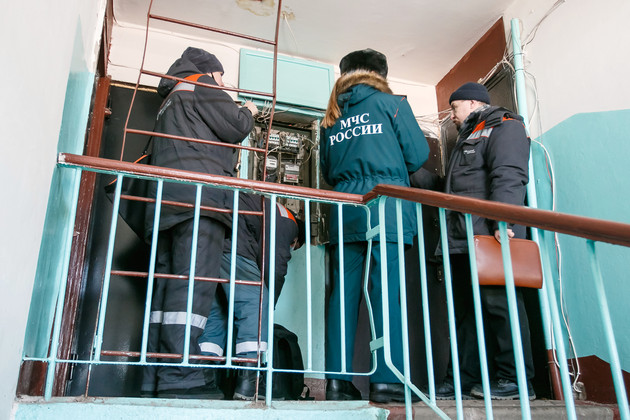 Представитель МЧС звонит в одну из квартир-должников, которые планировалось отключать во время рейда. Но - то ли хозяев нет дома, то ли они притворялись отсутствующими, дверь нам не открыли. Если работают, то почему не платят?