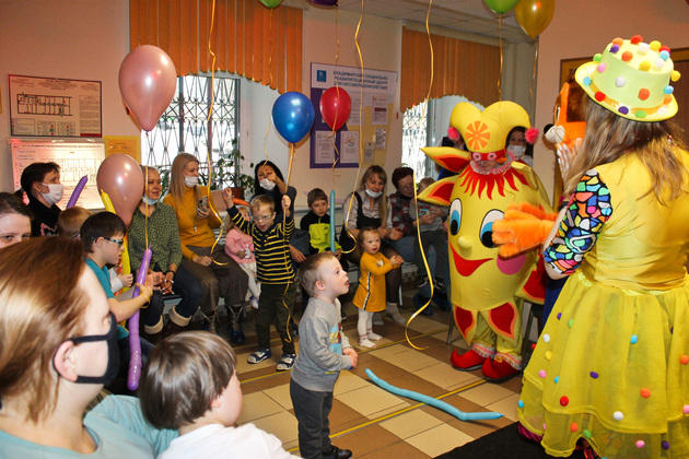 Юные гости приняли участие в анимационном шоу гигантских мыльных пузырей. Веселая Карамелька – артистка шоу - на глазах у завороженных ребят умело управляла огромными пузырями, строила из них замысловатые фигуры всех цветов радуги, а самых отважных детей приглашала войти внутрь гигантского мыльного пузыря.