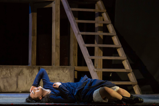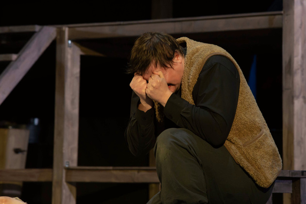 Роль рассказчика Зайкаускас отдал одному из своих самых любимых во владимирском театре актеров — Александру Аладышеву, параллельно делегировав актеру «дирижирование» музыкальным сопровождением постановки. Да-да — на этот раз нам подарили такую роскошь, как живая музыка на протяжении всего спектакля. И Аладышев, фронтмен «Blackcoverband», для этой цели и этого образа подошел как нельзя лучше. «Саундтрек» у создателей получился на славу.