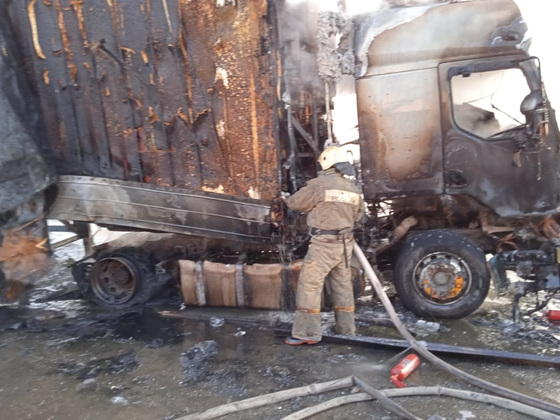 К моменту прибытия горела кабина и часть грузового полуприцепа. Пожарные не дали распространиться огню на весь автомобиль и оперативно его ликвидировали. Площадь тушения составила 8 кв. м. Погибших и пострадавших нет.