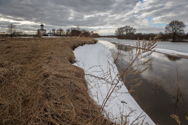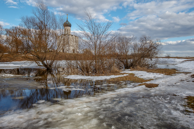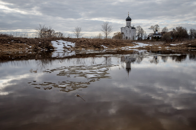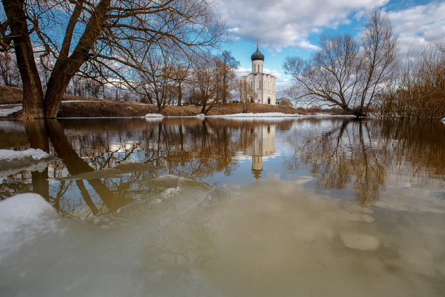 Одно из самых красивых и излюбленных мест паломников, туристов и фотографов - Боголюбовский луг у храма Покрова на Нерли - преображается весной, когда из берегов выходит река Нерль. Подробности в фоторепортаже нашего корреспондента Владимира Чучадеева.