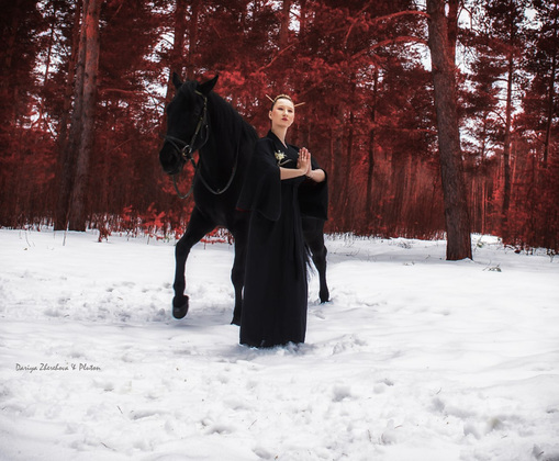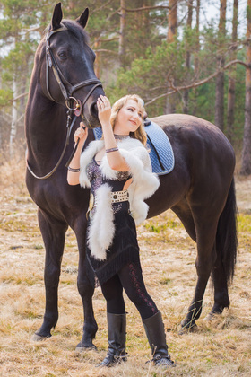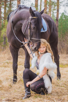В ее конюшне живут три коня — вороной Малыш (по паспорту - Наполеон), караковый Плутон (для своих — Тоша) и серый (хотя мы, люди без опыта, назвали бы его белым) Криз, с которыми она тренирует всех желающих — как детей, так и взрослых. А какие с ними получаются фотографии!