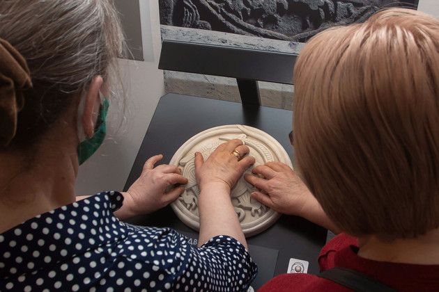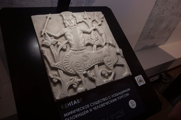 Новая экспозиция стала частью большого проекта «Трогательная история», который должен повысить доступность музеев для тех, чьи возможности здоровья ограничены. В данном случае выставлены тактильные копии белокаменных барельефов, которые люди с нарушениями зрения могут сколько угодно трогать, слушая при этом тифлокомментарии для незрячих в записи. Описания обычным текстом дублируются с помощью рельефно-графического шрифта. А тем посетителям, у которых проблемы со слухом, узнать все о шедеврах древнерусской резьбы по камню поможет медиагид с видеороликами на русском жестовом языке. То есть, на этой выставке задействован целый комплекс новейших музейных технологий.