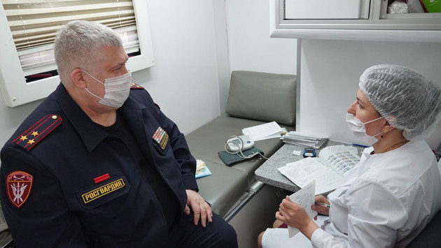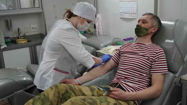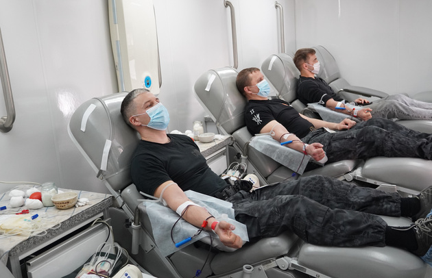 Перед началом процедуры они прошли обязательный медосмотр. А сам процесс сдачи крови проходил на территории ведомства в передвижной станции переливания крови.