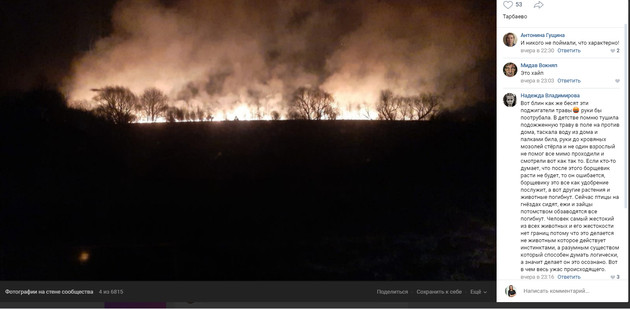 «Огонь двигается слишком стремительно, чтобы с ним могла справиться 1 пожарная машина», – оценила ситуацию пользователь ВКонтакте Олеся Дрозд.