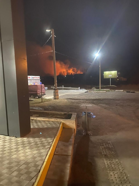 А вот стремительно разраставшийся пожар в поле, не доезжая поворота на Байгуши: