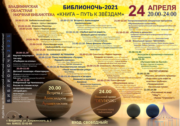Во Владимире настоящий космос возможностей откроется для посетителей областных библиотек: научной и для детей и молодежи. Публикуем афиши обеих.