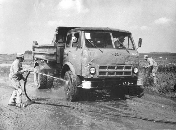 Мощные струи воды из шлангов, находящихся в руках военнослужащих, смывали с автомашин радиоактивную грязь и пыль. «Отработавшая свое» вода стекала в образовавшееся рядом болотце. Иные автомобили приходилось отмывать по два, а то и три раза, пока уровень исходящей от них радиации не снижался до допустимых норм. И так каждый день.