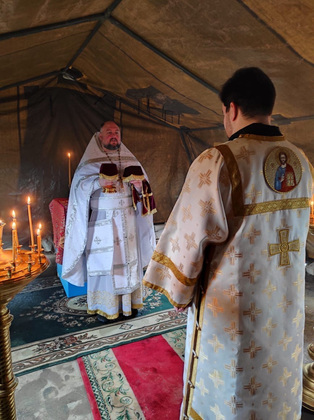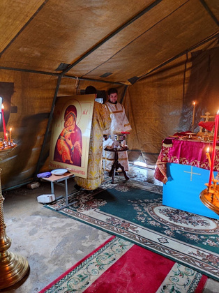 В Великую Субботу Страстной седмицы настоятель строящегося храма в честь Александра Невского в микрорайоне Веризино и клирик Свято-Георгиевского храма иерей Виталий Видяев совершил Божественную литургию в полевых условиях, сообщает Владимирская епархия.