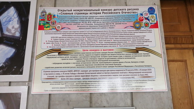 «Владимирские ведомости» уже не раз рассказывали об этом уникальном проекте, ключевым организатором которого выступает Общественный Центр гражданского, военно-патриотического воспитания и подготовки молодёжи к службе в армии и флоте РФ «ФРЕГАТ» из Киржача. Дети из Владимирской, Московской, Тамбовской областей, Москвы, Приморского края и Республики Беларусь прислали на конкурс «Славные страницы истории Российского Отечества» рисунки по нескольким темам. Среди них: «Великая Отечественная война 1941-1945 гг. – память моей семьи», «Армия и флот России», «Славные страницы ДОСААФ России» и т.д.