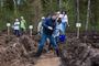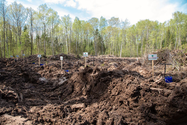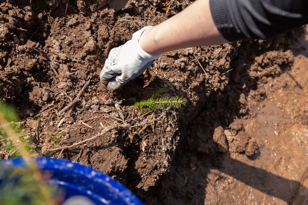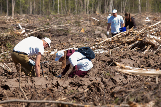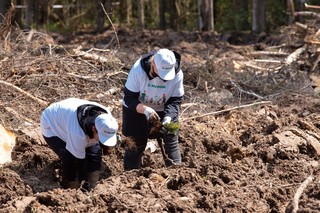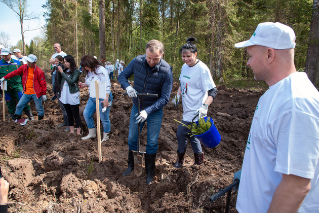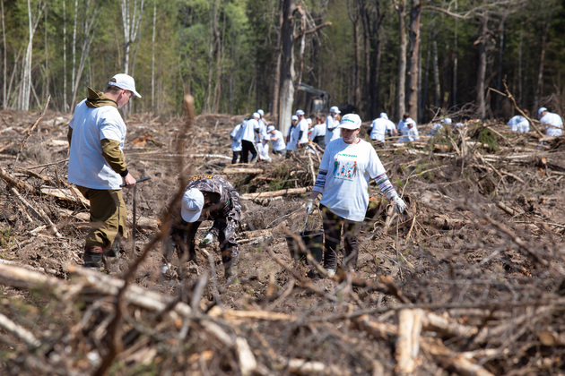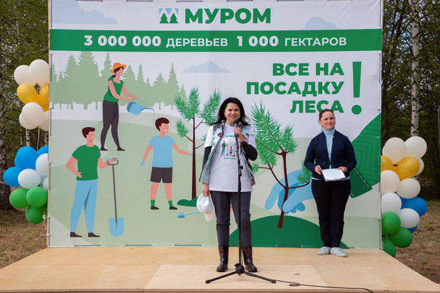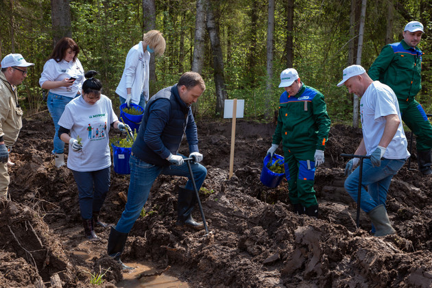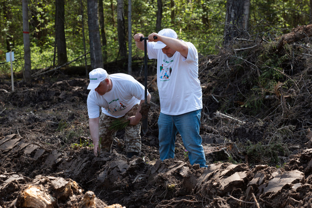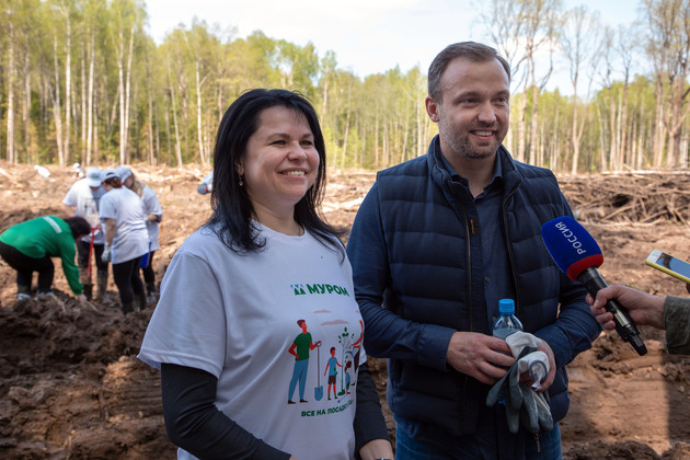 С приветственным словом выступили Александр Ремига и гендиректор ЗАО «Муром» Ольга Тихонова. Вскоре после этого они вместе со школьниками из общеобразовательной школы № 30 села Андреевского и работниками ЗАО «Муром» отправились на посадку саженцев. Надо было продвинуться в лес еще на полкилометра. Для саженцев на «пасеки» распахали примерно 10 гектаров. Александр Ремига шел по одной борозде с Ольгой Тихоновой. Он проделывал в почве углубления с помощью специального бура, а гендиректор ЗАО «Муром» прикапывала в них саженцы елей-двухлеток. Работа спорилась.