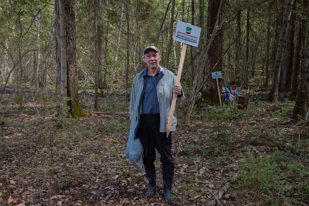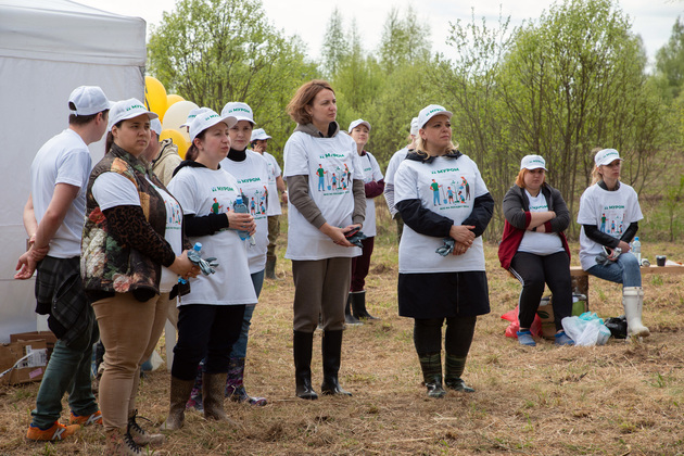 Сцена была украшена плакатом: «Все на посадку леса! 3 000 000 деревьев, 1000 гектаров». Бойцы из муромской воинской части разжигали походную кухню, которую почему-то прикрывали маскировкой, как будто она развертывалась в прифронтовой полосе (наверное, у них это профессиональный навык) и носили мешки с гречкой. Какой настоящий праздник без гречневой каши? Всех опрыскивали средствами от клещей. И выдавали резиновые сапоги. Дело было поставлено как надо. Было обустроено даже место для курения.