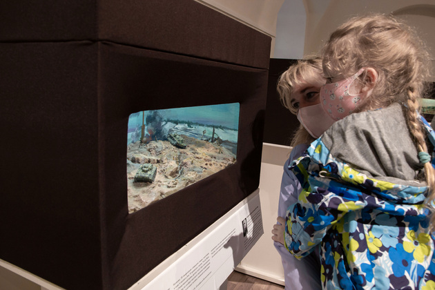 - Ну не до вечера же мне там стоять! – ответила девочка. Тем более, посмотреть ей хочется много. Она увлеченно разглядывала диорамы из Государственного мемориального музея А.В.Суворова в Санкт-Петербурге, воссоздающие самые значимые военные сражения. Кстати, удивительно, но в этом зале были в основном девчонки. Точно: вырастут - коня на скаку остановят!