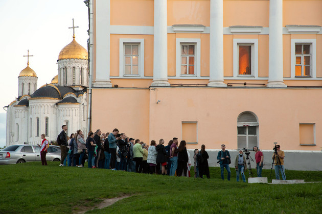 Пока часть гостей «Ночи музеев» гуляла по Большой Московской прошлого века, другая экскурсия отправилась похожим маршрутом по современному Владимиру. Экскурсанты знакомились с местами, связанными с именем Александра Невского: от Золотых ворот, в которые князь въехал впервые прибыв на княжение, и до места его захоронения.