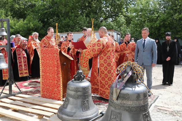 Внутренние строительные работы в новой церкви близки к завершению, уже готов иконостас. А накануне губернатор Владимир Сипягин присутствовал при освящении новых колоколов. Чин освящения провел Митрополит Владимирский и Суздальский Тихон.