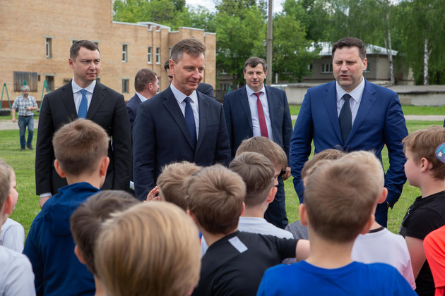 Но пока еще на травяном поле стадиона тренируются юные спортсмены, с которыми дружески поговорил губернатор. Ему представили молодых и перспективных конькобежцев Милену Береговенко и Никиту Патронова, которые отстаивают честь области на крупных соревнованиях.