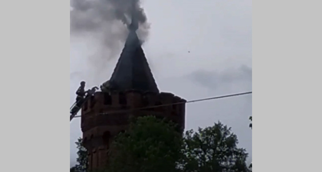 По сведениям, предоставленным региональным управлением МЧС, вызов поступил оперативному дежурному в 12.57. На тушение возгорания выезжали две автоцистерны и автолестница. Площадь пожара составила 1 квадратный метр. Пострадала деревянная обрешётка.