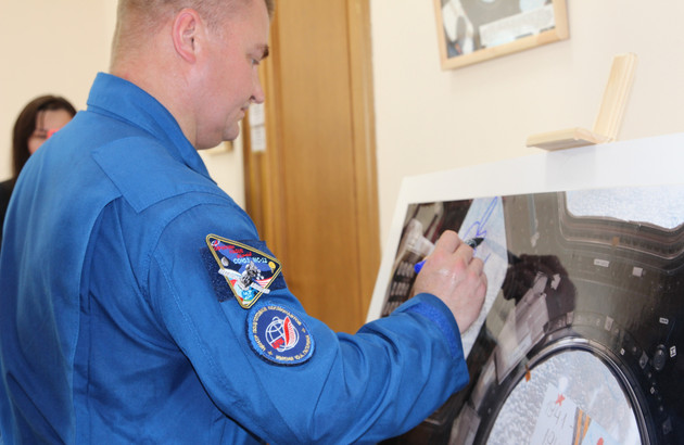Алексей Овчинин сразу отметил, что на каждом рисунке, побывавшем на орбите, Александр Скворцов поставил печать МКС, и печать эта хранится в одном экземпляре в космосе.