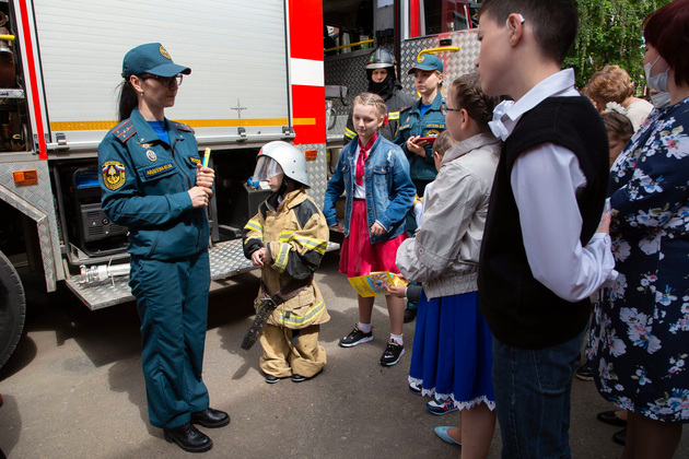 Потом ребят на площадках ждали встреча со спасателями МЧС, игры, развлечения и мастер-классы. Во дворе центра можно было увидеть пожарные машины и снаряжение спасателей, которое они развернули по полной. Их сразу же окружили ребятишки.