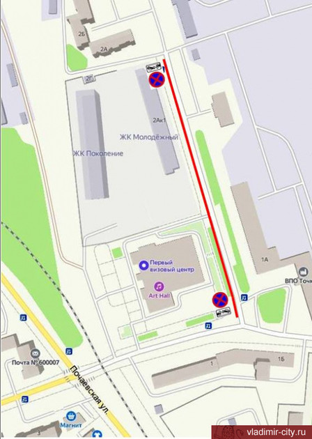 Перекрытие улицы Северной обернулось и закрытием основного заезда к заводу "Точмаш". Здесь введено еще и ограничение парковки транспортных средств на участке дороги от дома №2а по улице Северная до дома № 2а по Почаевской.