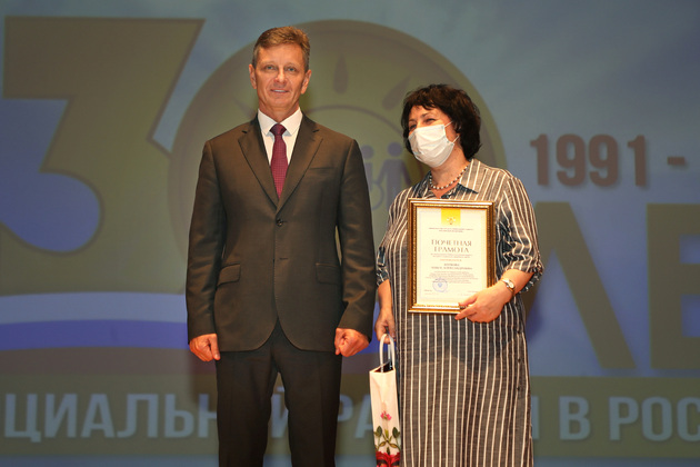 Любовь Евгеньевна по случаю 30-летнего юбилея службы вручила почетные знаки «За милосердие» от Российского Союза социальных педагогов и работников. Среди награжденных – директор Кольчугинского детского дома-интерната Наталья Мельникова и руководитель центра для лиц без определенного места жительства Сергей Ефремов.