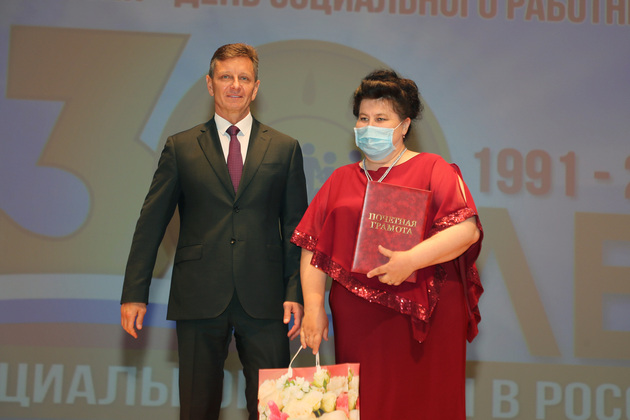 Поздравление и заявление губернатора о том, что всем работникам соцзащиты к профессиональному празднику будут выплачены премии, было встречены радостью и бурными аплодисментами.