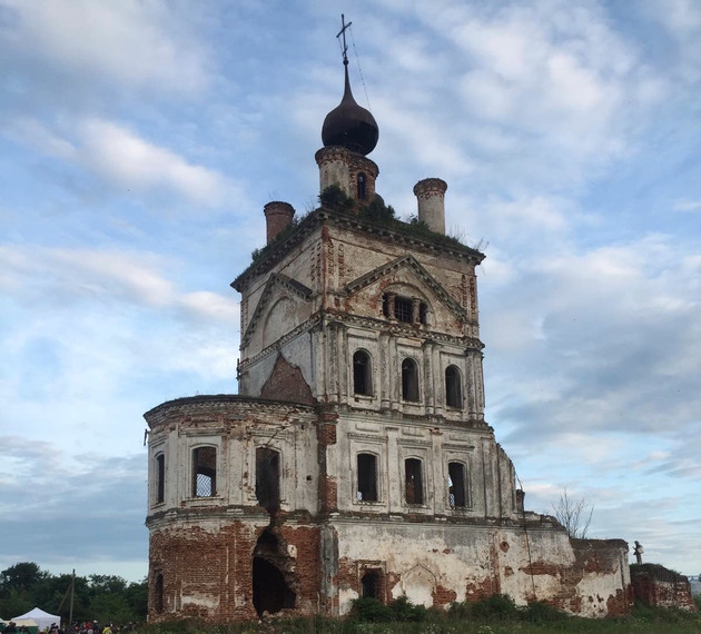 Это было своего рода музыкально-поэтическое паломничество к полуразрушенной церкви, напоминающей средневековый замок. Второй концерт восьмого по счету фестиваля прошел под открытым небом рядом со старинной церковью Архистратига Михаила — Троицы Живоначальной.